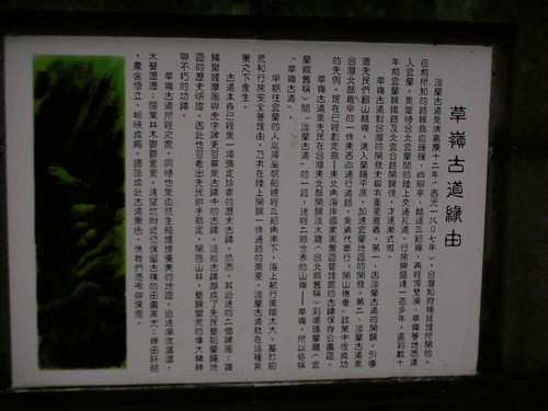 走到一半看到草嶺古道緣由的牌子,就給他拍一張啦,我看到這種字很多的牌子就會拍 XD