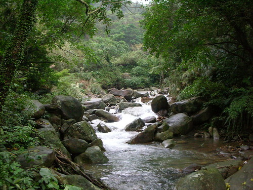 草嶺古道上拍溪流,連日下雨水量很大。