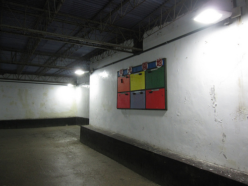 牆上有標語,要是自己一個人時可以喊來壯膽。