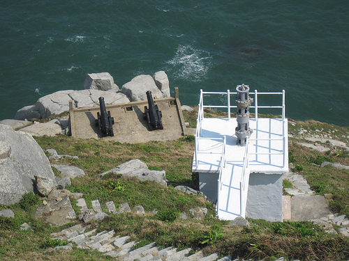 燈塔下方有霧笛霧砲,大霧看不見燈塔時發聲用,供船隻聽音辨位。