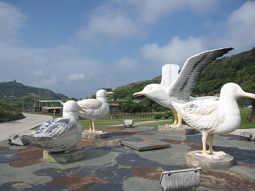 經過安東坑道往市區,圓環中央有黑尾鷗的大模型。