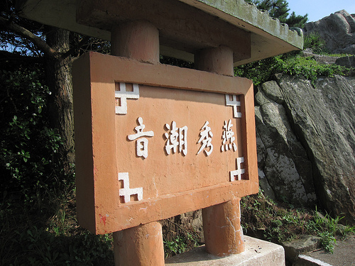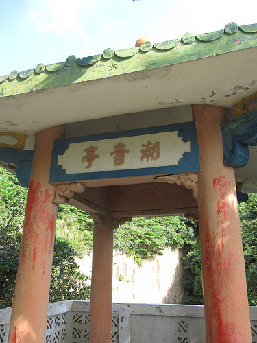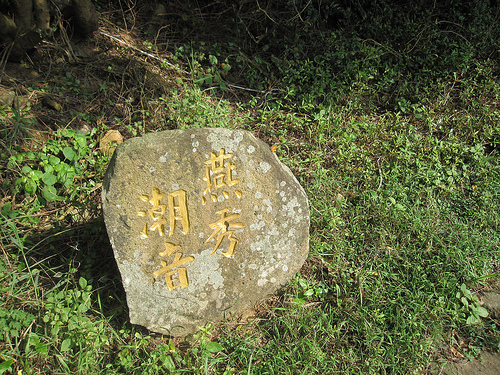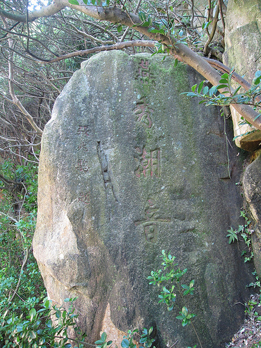 潮音亭旁邊有樓梯往下,有一處平台和這塊石雕。