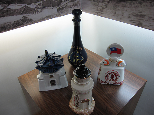 這些都是限量紀念酒,前方的東湧燈塔是燈塔百年紀念(2004)所發限量紀念酒,現在市價已飆到六七千塊。