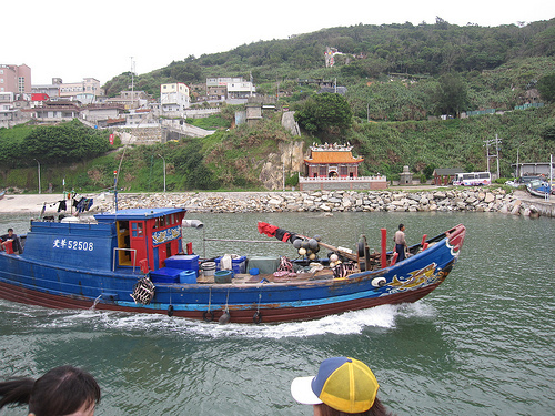 準備出港的漁船,船身上有彩繪。