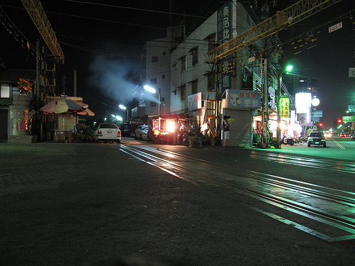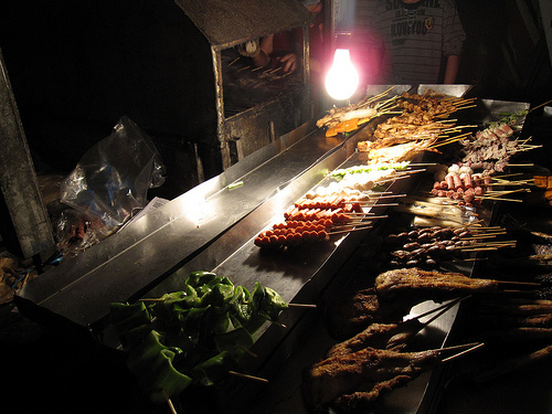 雲林虎尾鐵路烤肉。攤位真的放在鐵軌上。
