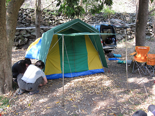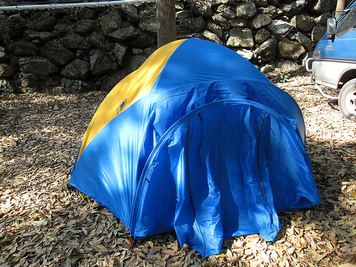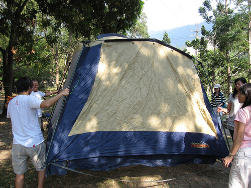 大家開始搭帳篷,雖然阿蛋叫大家把地上的石頭撿一撿,但地上都是落葉,而且有些石頭or樹根是不能移動的,只象徵性的撿幾顆就開始搭帳篷了。