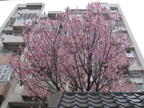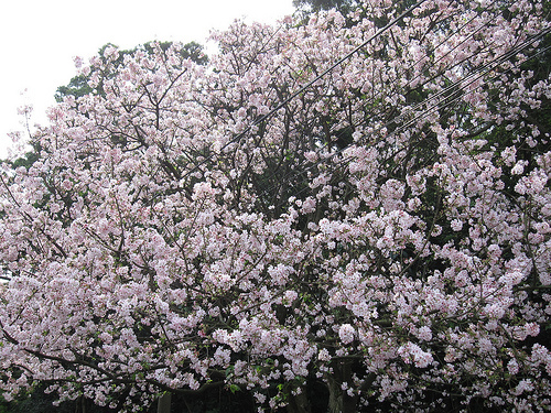天元宮附近的住家「櫻花村」,是今天看到第一棵盛開的吉野櫻。