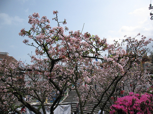 天元宮右側走道的吉野櫻,花都要把天元宮擋住了。