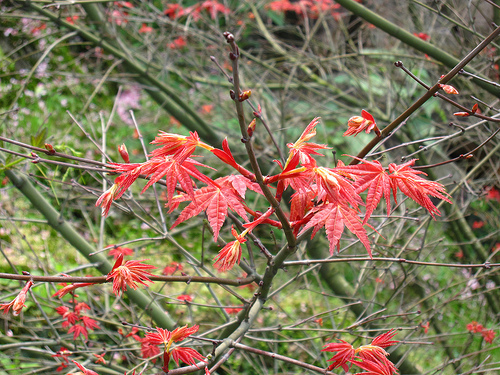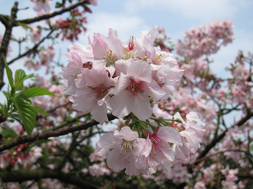 天元宮門前的吉野櫻,已經有少許綠葉。