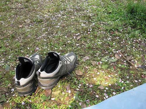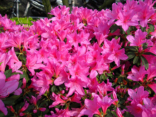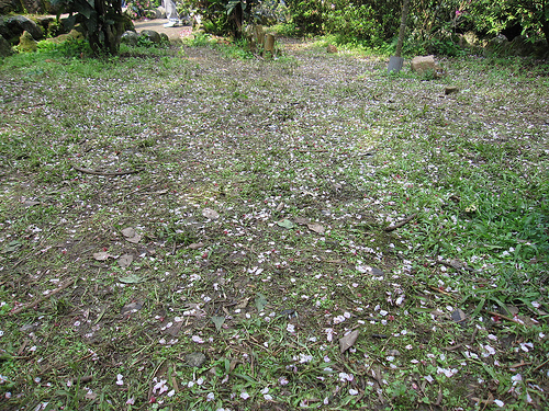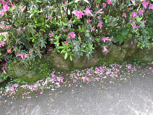 昨天下了一整天的雨,地上有好多落櫻+杜鵑。