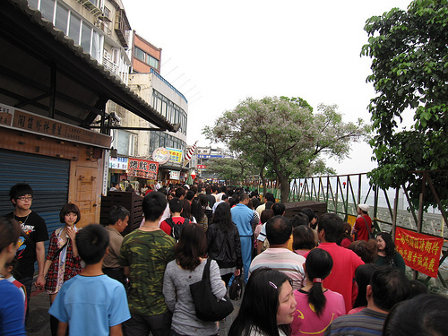 看到眼前的車潮,決定把車停在巷子裡,走路過去!