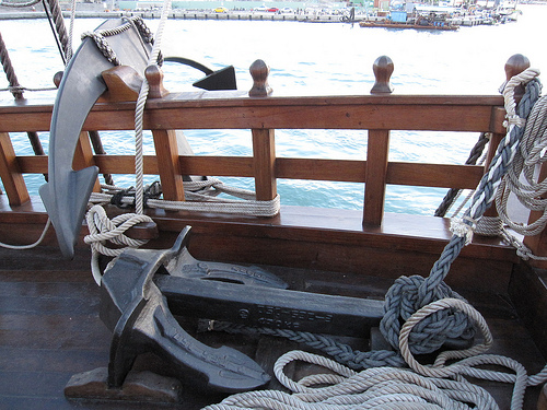 這是2大2小的船錨,分別為1000公斤和420公斤,需搭配絞盤使用。