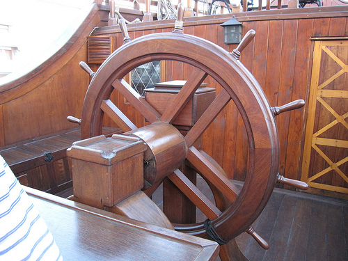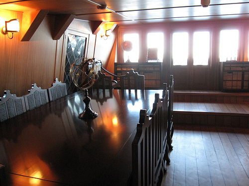 主甲板的用餐處的船鐘,響二聲代表交班,響三聲則是開飯囉。