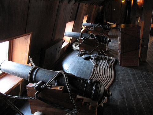 艦砲甲板,共有10門加農砲,大航海時期船員皆睡於砲與砲之間,以便隨時回擊敵方,現在則變成船員午睡的場所。